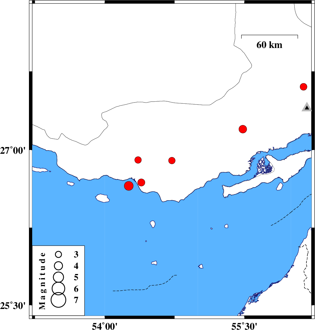 | 2022/06/14 | 02:55:05.7 | 07:25:05.7 | 26.897 | 54.721 | 12 | ML:3.3 | Hormozgan Province, 43 km North-West of Bandar-e lengeh | ||