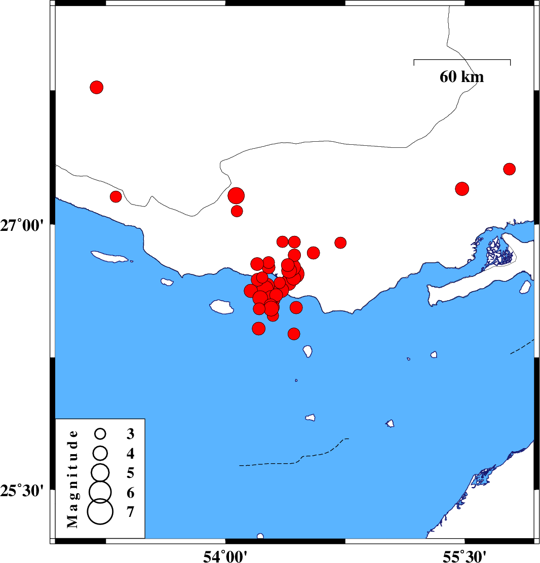 2022/06/15 19:53:54.8 00:23:54.8 26.68954.20212 ML:3.6 Persian Gulf, 59 km South-West of Bastak