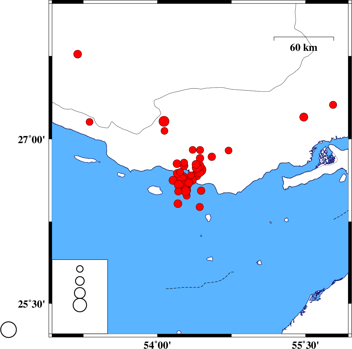 Persian Gulf, 59 km South-West of Bastak | |