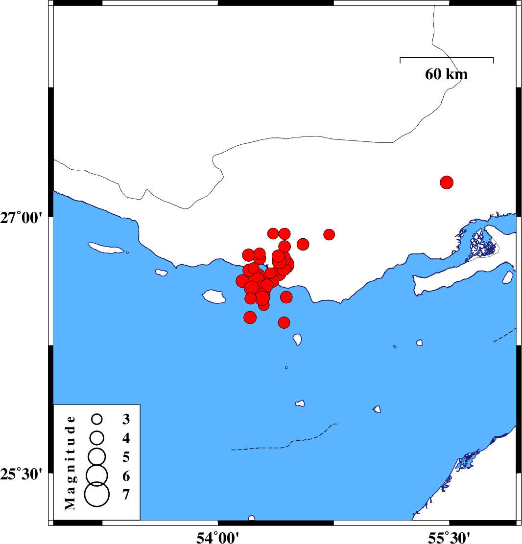 2022/06/15 19:53:54.8 00:23:54.8 26.68954.20212 ML:3.6 Persian Gulf, 59 km South-West of Bastak