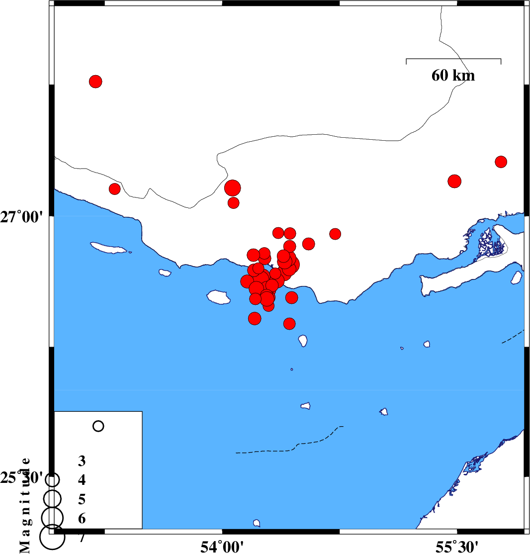 2022/06/15 19:53:54.8 00:23:54.8 26.68954.20212 ML:3.6 Persian Gulf, 59 km South-West of Bastak