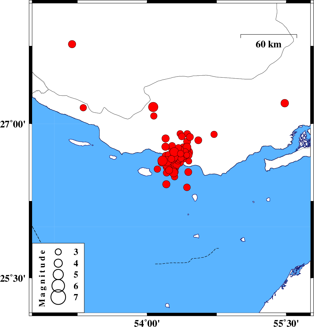 Persian Gulf, 63 km South-West of Bastak | |
