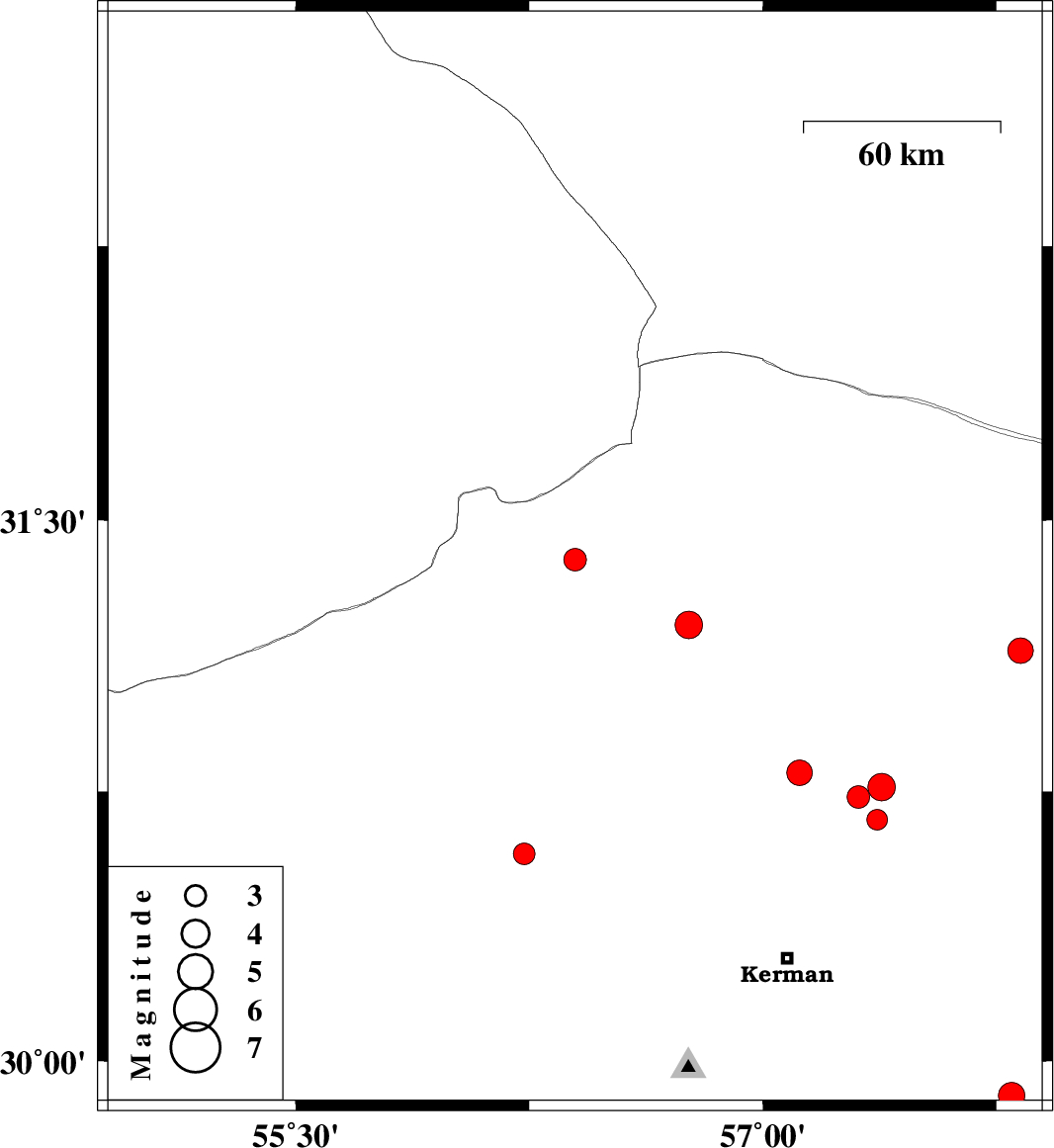 | 2022/05/20 | 15:48:06.5 | 20:18:06.5 | 29.903 | 57.799 | 12 | ML:3.8 | Kerman Province, 81 km South-East of Kerman |