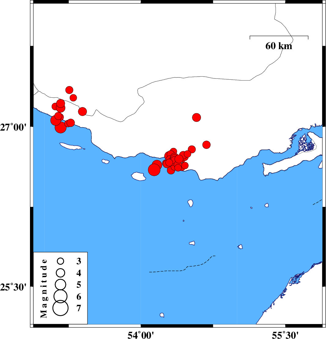 2022/06/18 16:44:47.5 21:14:47.5 26.64254.16612 ML:4.7 Persian Gulf, 65 km South-West of Bastak