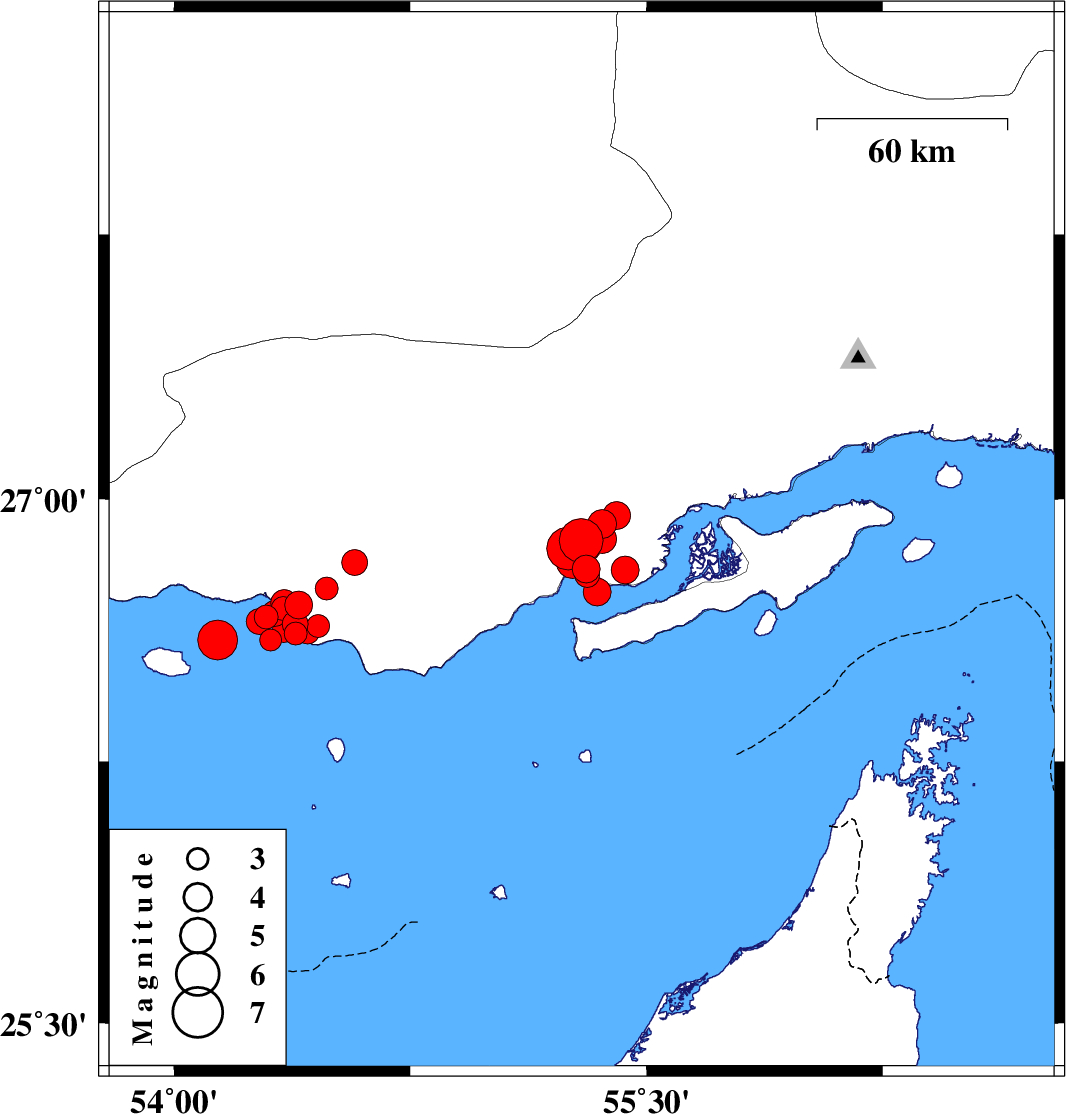 2022/06/24 23:47:23.3 04:17:23.3 26.65154.2712 ML:3.7 Persian Gulf, 62 km South of Bastak