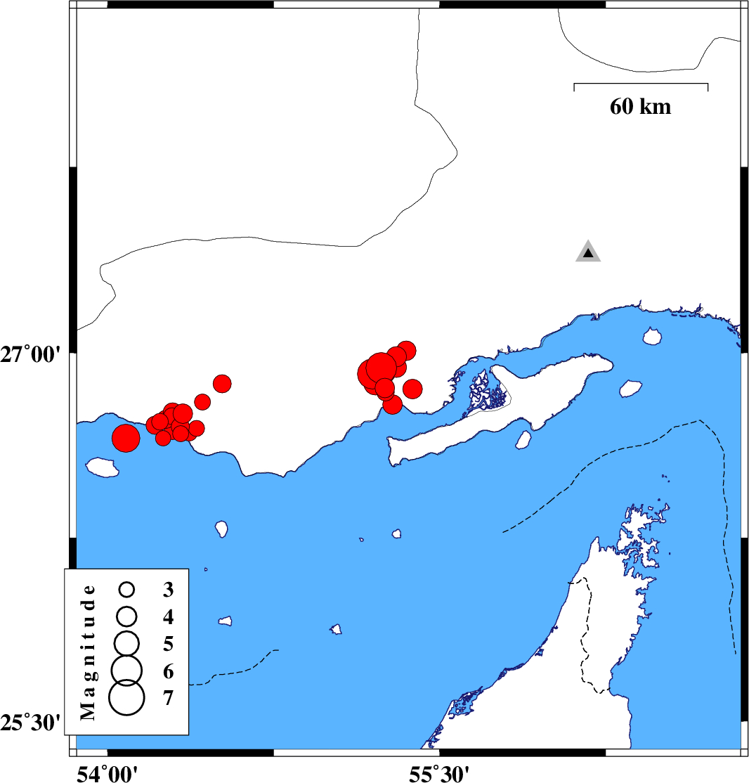 2022/06/24 23:47:23.3 04:17:23.3 26.65154.2712 ML:3.7 Persian Gulf, 62 km South of Bastak