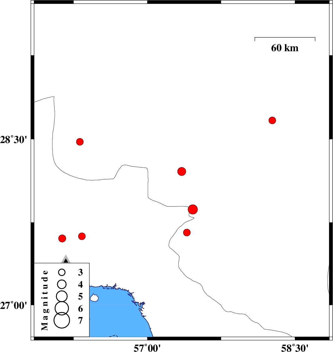 | 2022/07/01 | 19:28:31.4 | 23:58:31.4 | 28.21 | 57.349 | 12 | ML:3.8 | Kerman Province, 45 km North-West of Kahnuj | ||