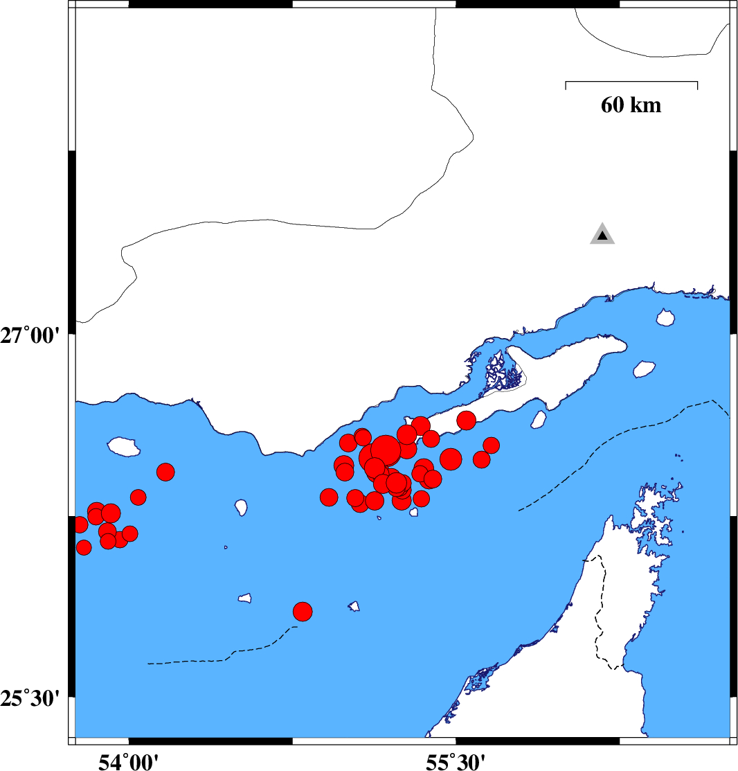 2022/07/02 00:37:39.7 05:07:39.7 26.76655.34616 ML:3.6 Persian Gulf, 56 km North-East of Bandar-e lengeh