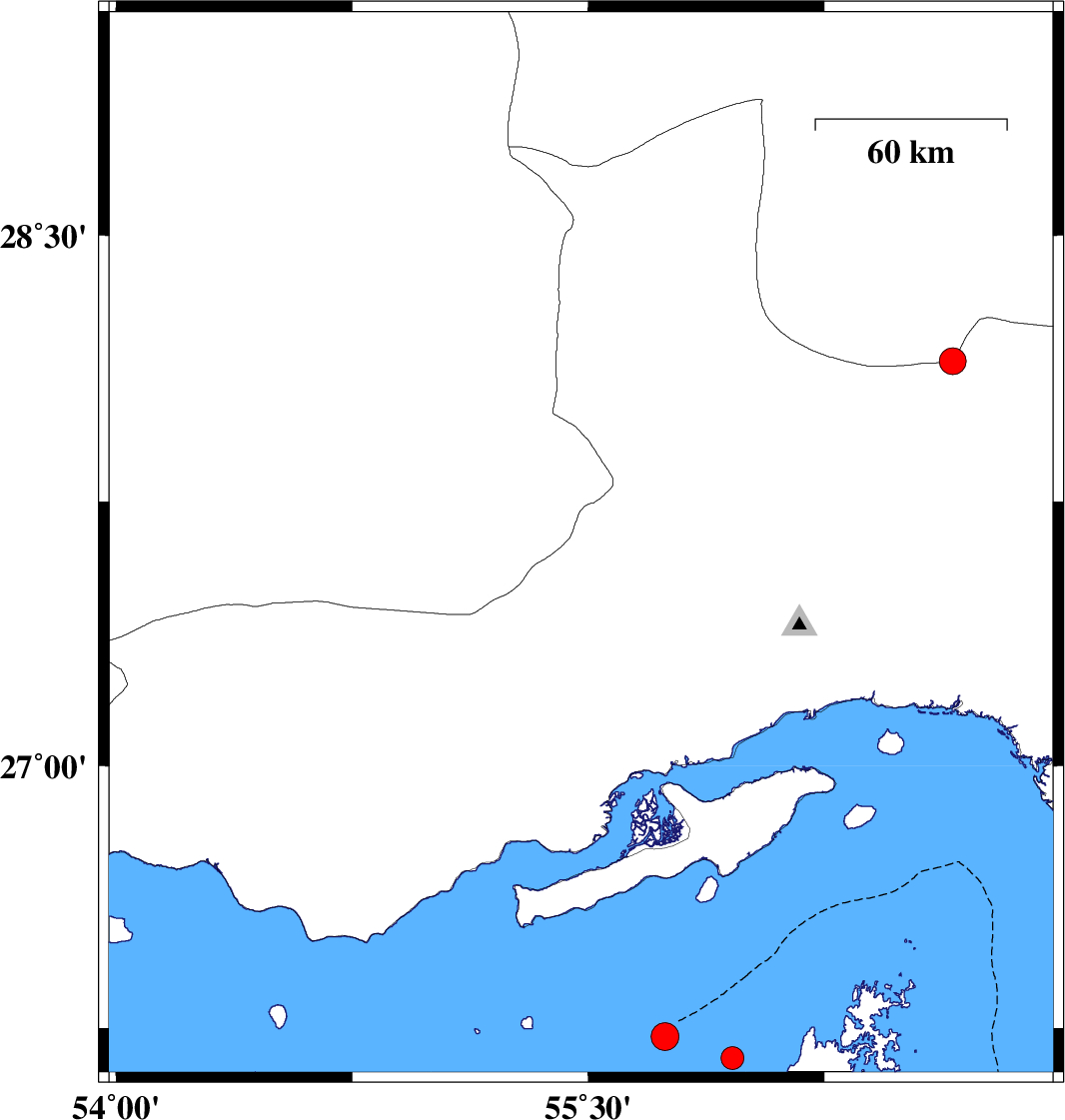 Persian Gulf, 55 km -West of Bandar-e lengeh | |
