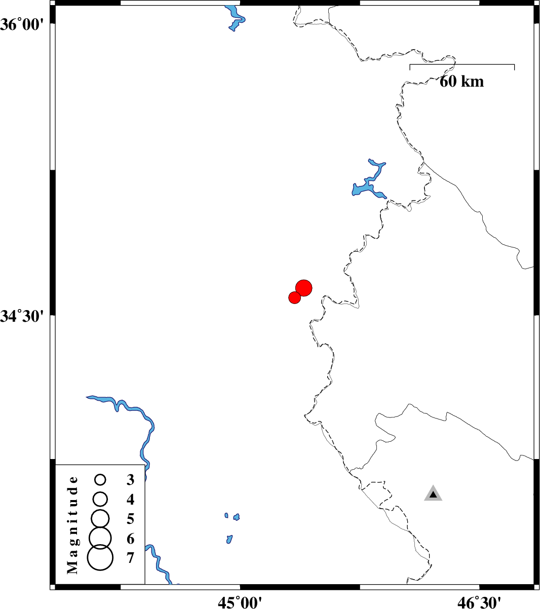 | 2022/07/18 | 08:04:55.1 | 12:34:55.1 | 34.64 | 45.399 | 26 | ML:4.6 | Iraq, 22 km North-West of Qasr-E-Shirin |