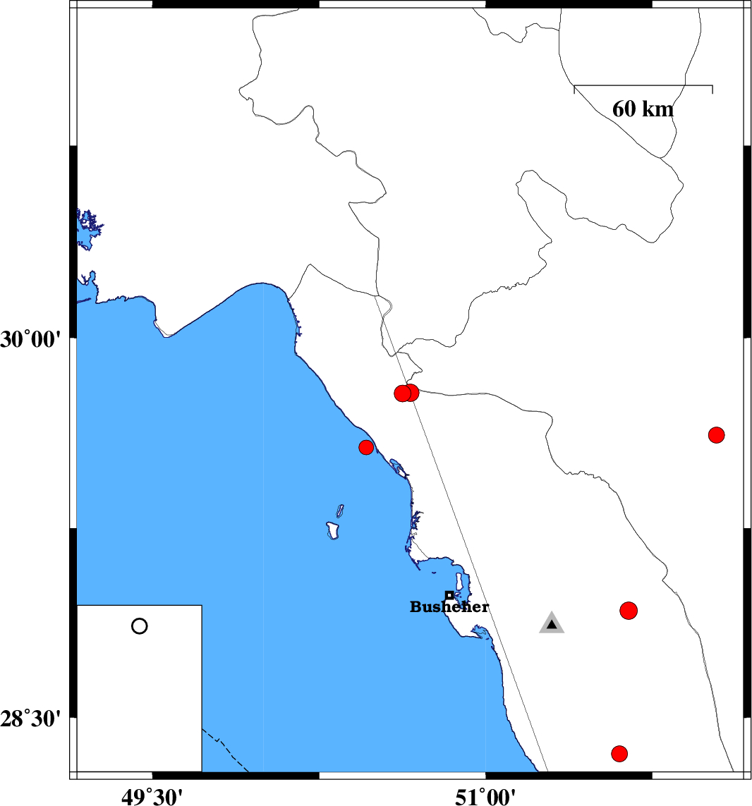 | 2022/08/06 | 03:43:59.5 | 08:13:59.5 | 29.784 | 50.66 | 12 | ML:3.5 | Bushehr Province, 27 km North-East of Bandar-e genaveh | ||