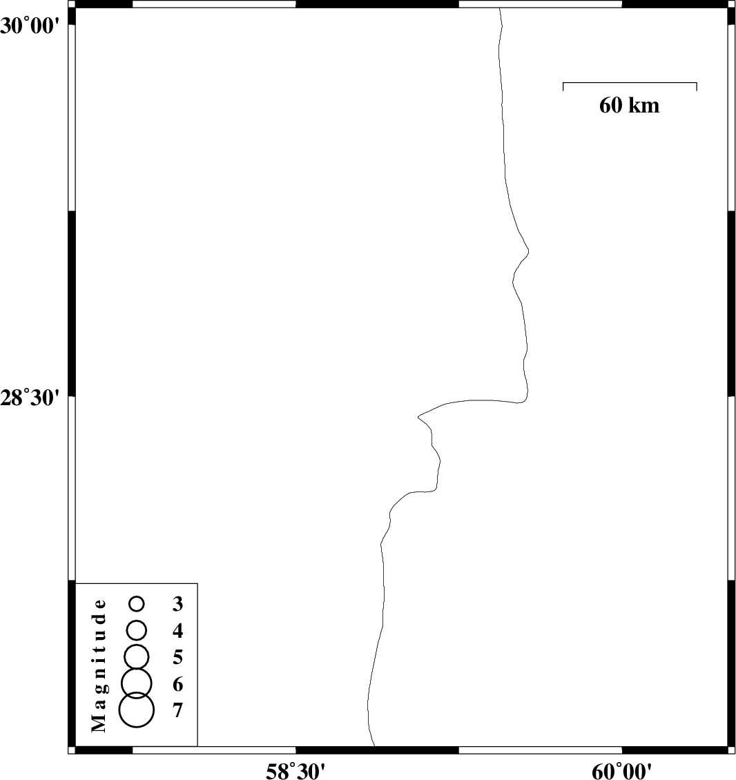 | 2022/08/19 | 04:02:15.2 | 08:32:15.2 | 28.567 | 58.986 | 12 | ML:3.7 | Kerman Province, 86 km South-East of Bam |