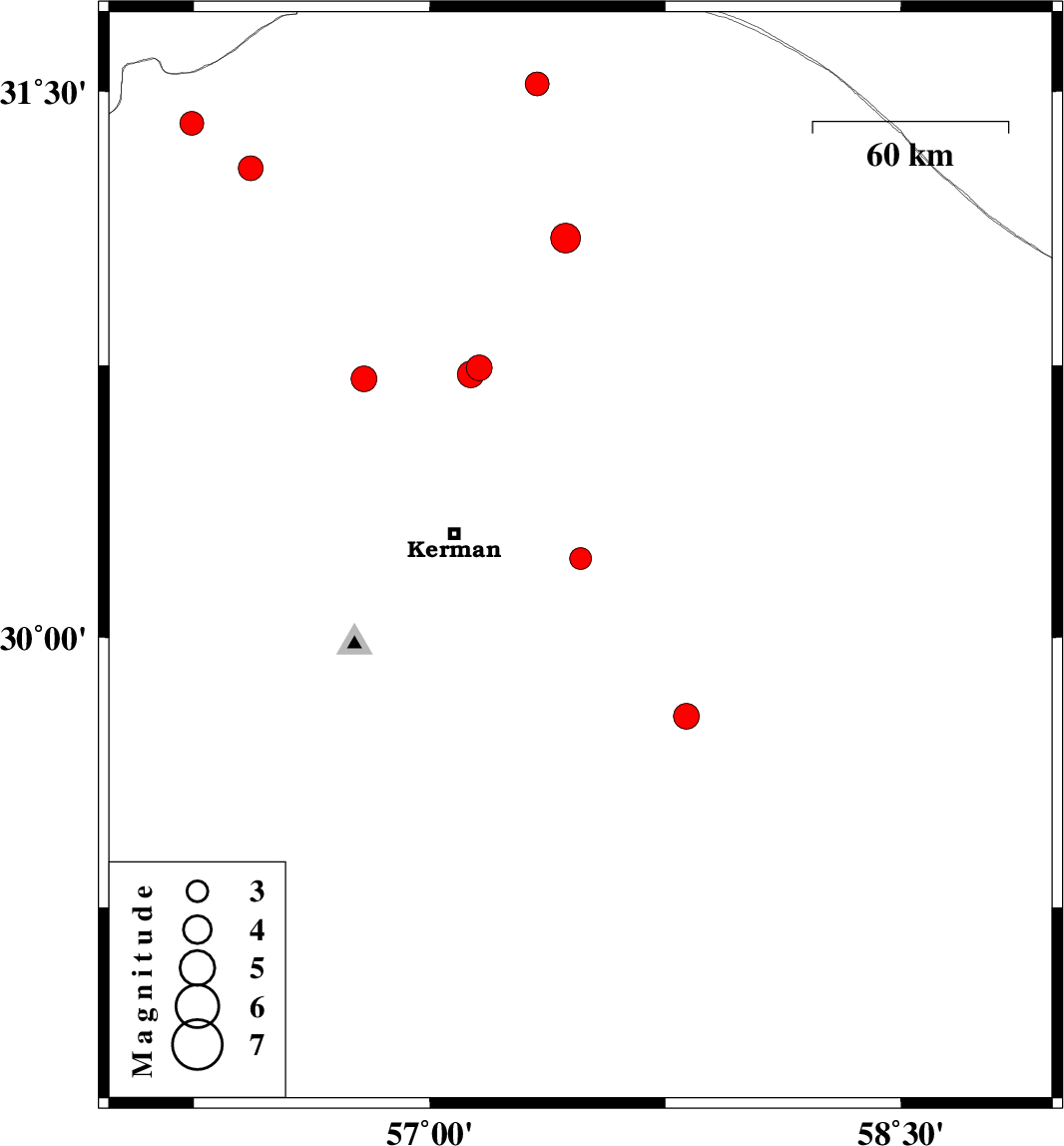 | 2022/08/10 | 19:32:36.3 | 00:02:36.3 | 29.782 | 57.816 | 12 | ML:3.6 | Kerman Province, 124 km North of Jiroft | ||