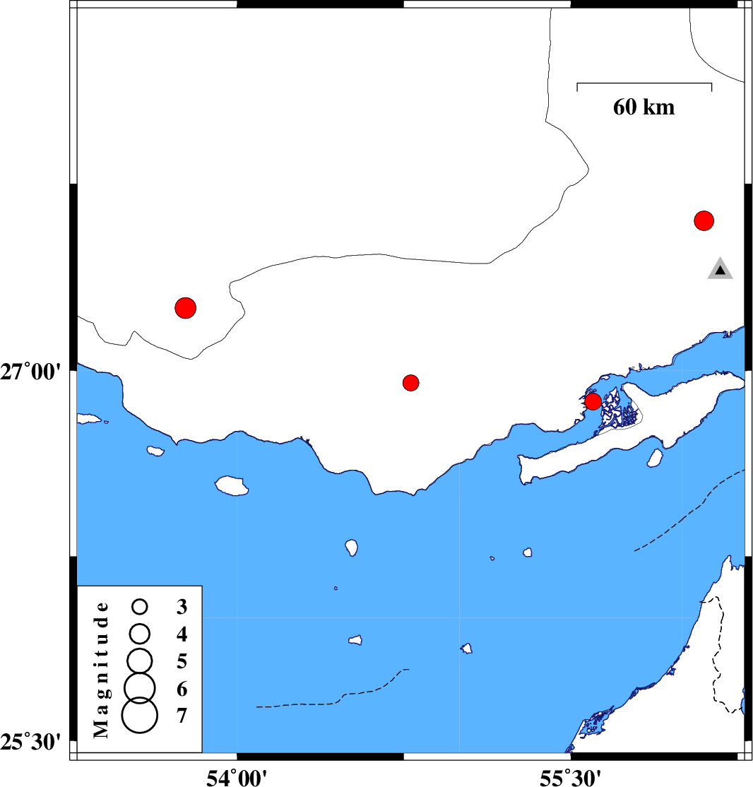 | 2022/08/26 | 03:05:54.1 | 07:35:54.1 | 27.601 | 56.099 | 7 | ML:4 | Hormozgan Province, 50 km North-West of Bandar-e abbas | ||