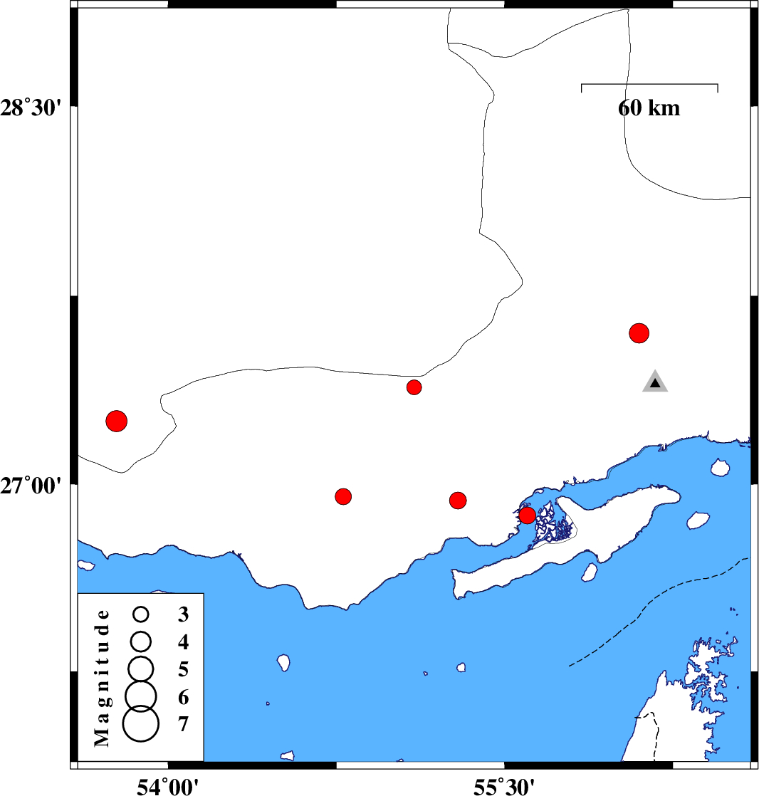 | 2022/08/26 | 03:05:54.1 | 07:35:54.1 | 27.601 | 56.099 | 7 | ML:4 | Hormozgan Province, 50 km North-West of Bandar-e abbas | ||