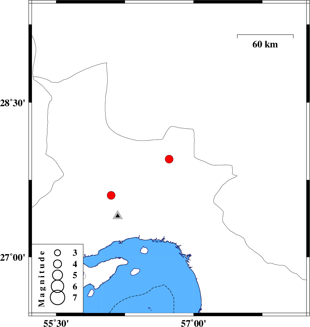 | 2022/08/26 | 03:05:54.1 | 07:35:54.1 | 27.601 | 56.099 | 7 | ML:4 | Hormozgan Province, 50 km North-West of Bandar-e abbas | ||