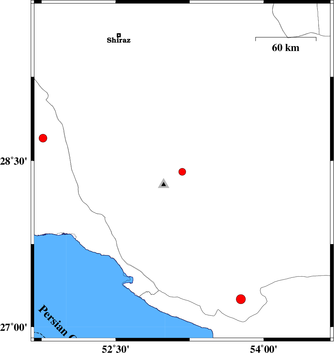 | 2022/09/04 | 22:24:26.8 | 02:54:26.8 | 28.401 | 53.175 | 11 | ML:3.3 | Fars Province, 16 km -East of Qir va Karzin | ||