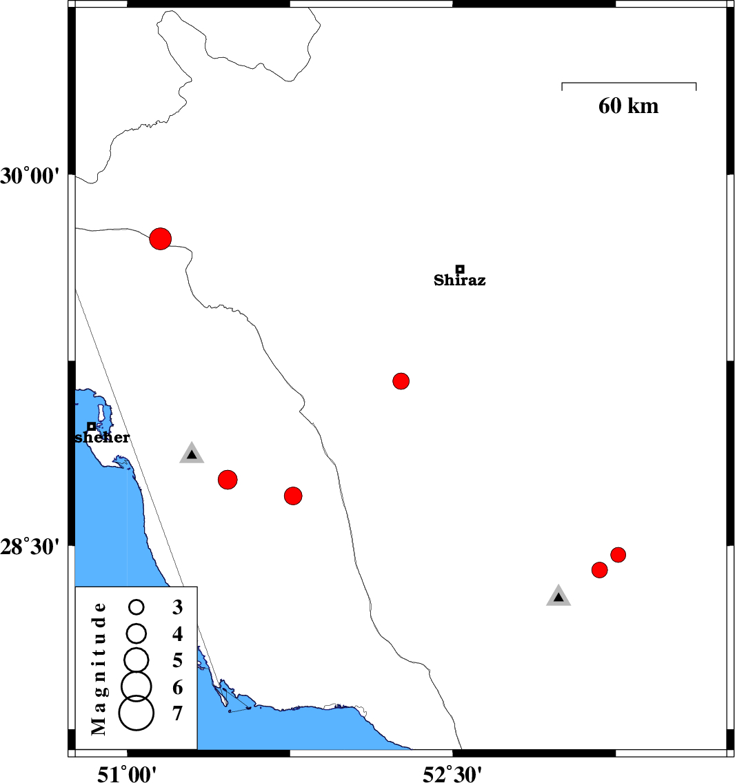 | 2022/09/11 | 09:58:39.3 | 14:28:39.3 | 29.167 | 52.261 | 8 | ML:3.4 | Fars Province, 37 km North-East of Farashband | ||