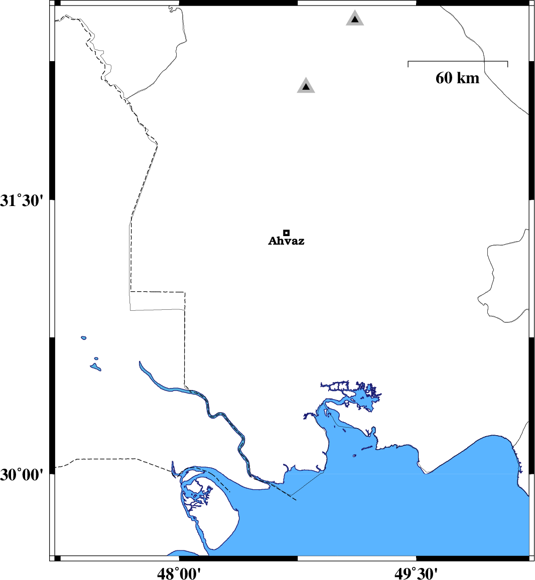 | 2022/08/25 | 19:58:31.1 | 00:28:31.1 | 30.69 | 48.274 | 12 | ML:3.5 | Khoozestan Province, 30 km North of Khorramshahr |