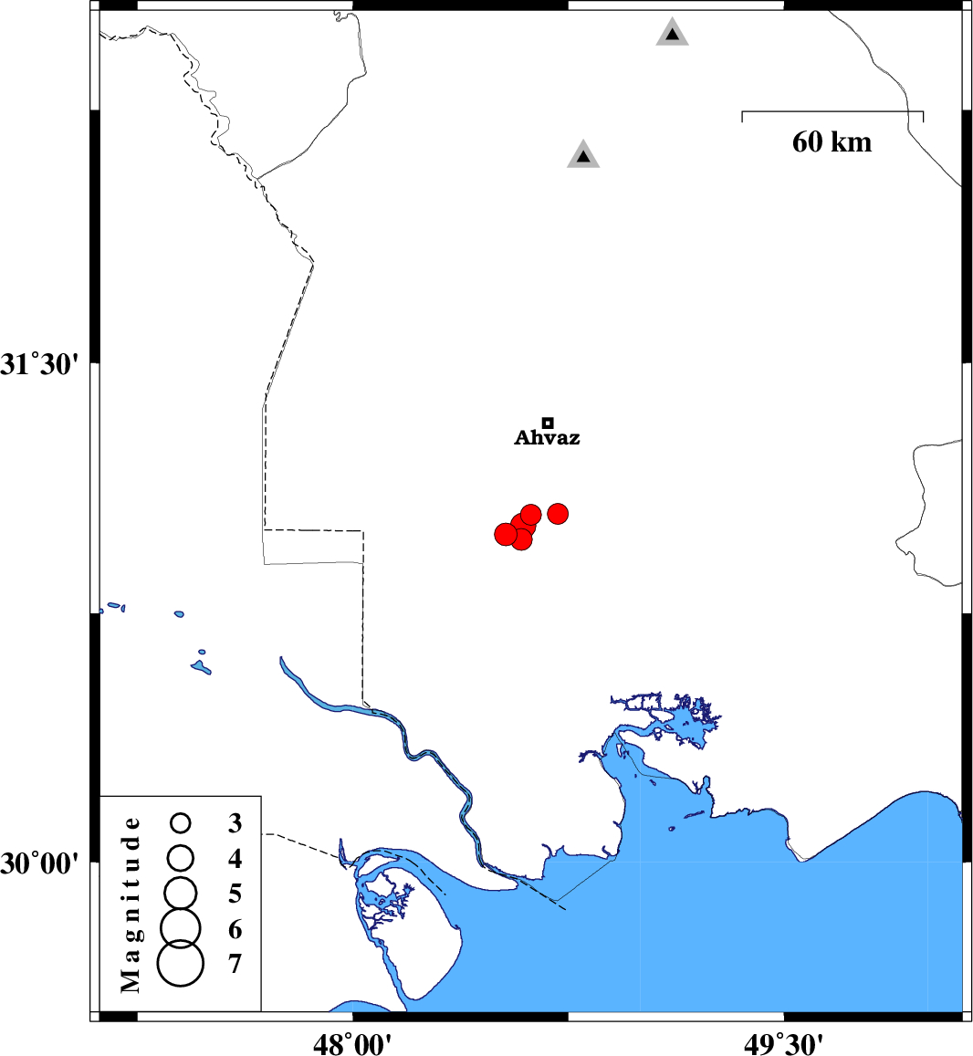 | 2022/09/11 | 07:35:25.2 | 12:05:25.2 | 31.013 | 48.592 | 12 | ML:4 | Khoozestan Province, 35 km South of Ahvaz |