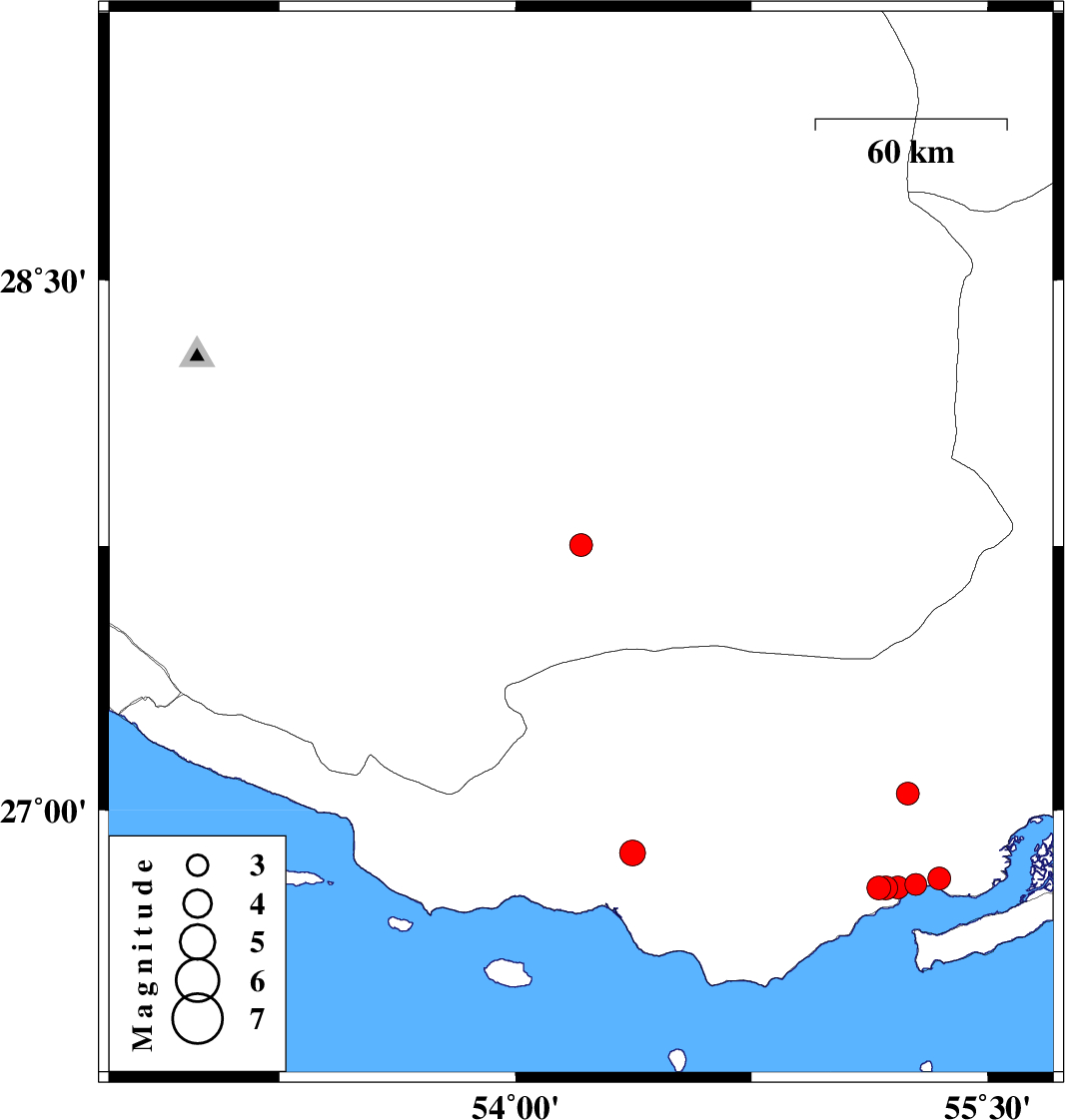 | 2022/09/14 | 20:20:49.3 | 00:50:49.3 | 26.778 | 55.154 | 15 | ML:3.4 | Hormozgan Province, 41 km North-East of Bandar-e lengeh | ||