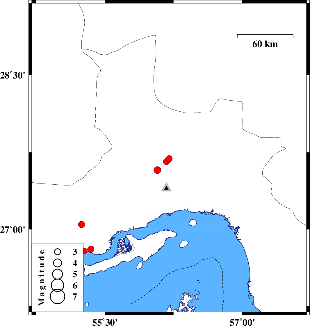 | 2022/09/14 | 20:20:49.3 | 00:50:49.3 | 26.778 | 55.154 | 15 | ML:3.4 | Hormozgan Province, 41 km North-East of Bandar-e lengeh | ||