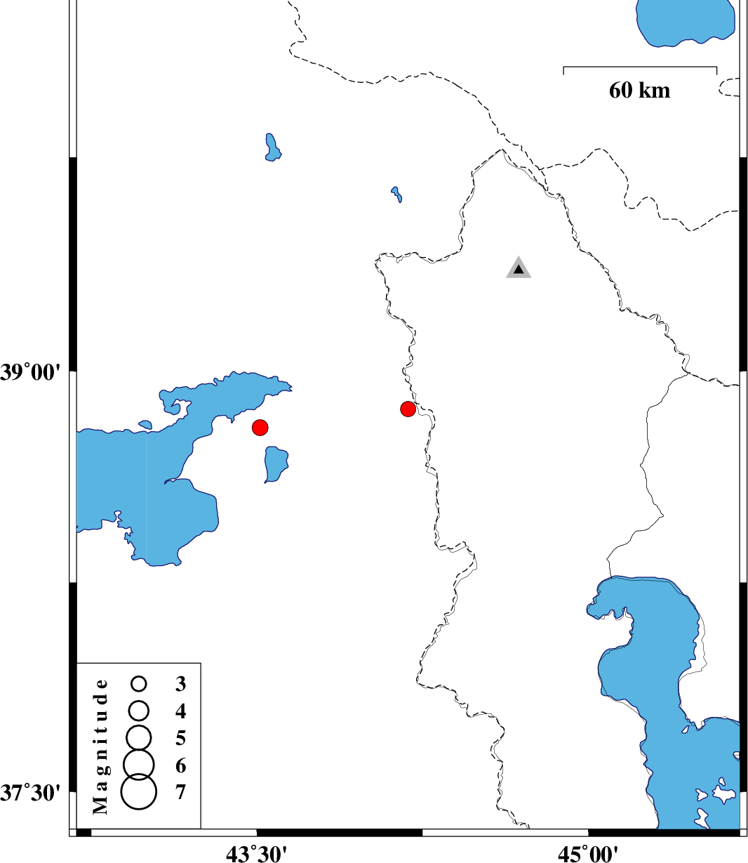 | 2022/09/11 | 04:03:14.1 | 08:33:14.1 | 38.8 | 43.514 | 12 | ML:3.2 | Turkey, 83 km South-West of Seyah Cheshmah |