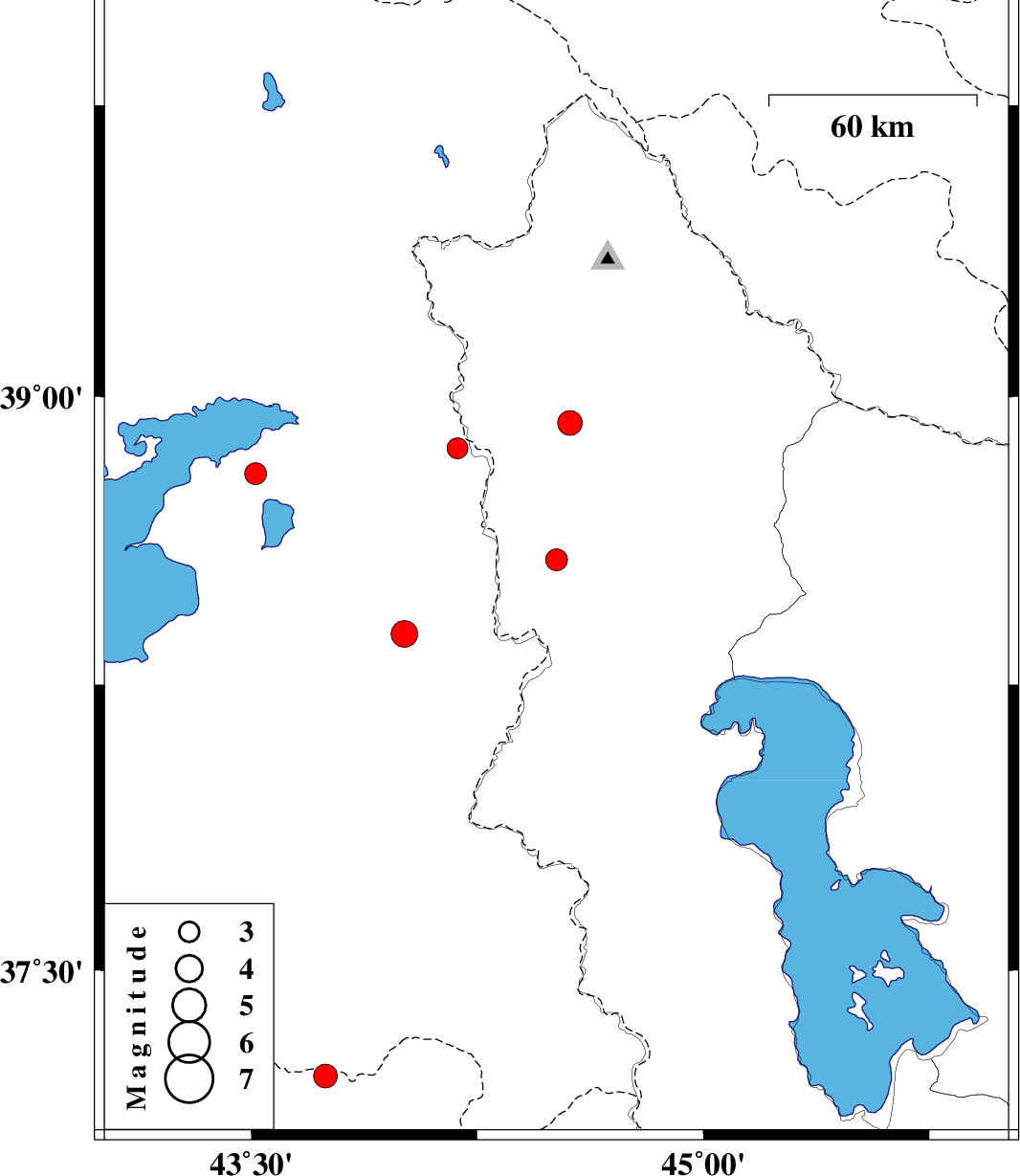 | 2022/09/11 | 04:03:14.1 | 08:33:14.1 | 38.8 | 43.514 | 12 | ML:3.2 | Turkey, 83 km South-West of Seyah Cheshmah | ||