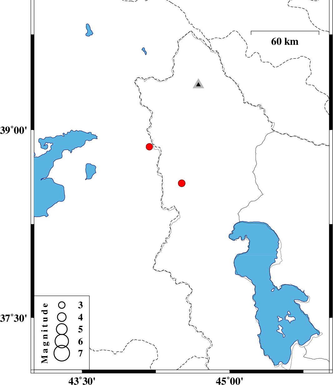 | 2022/09/18 | 21:13:09.6 | 01:43:09.6 | 38.866 | 44.184 | 12 | ML:3.1 | Turkey, 30 km South-West of Seyah Cheshmah |