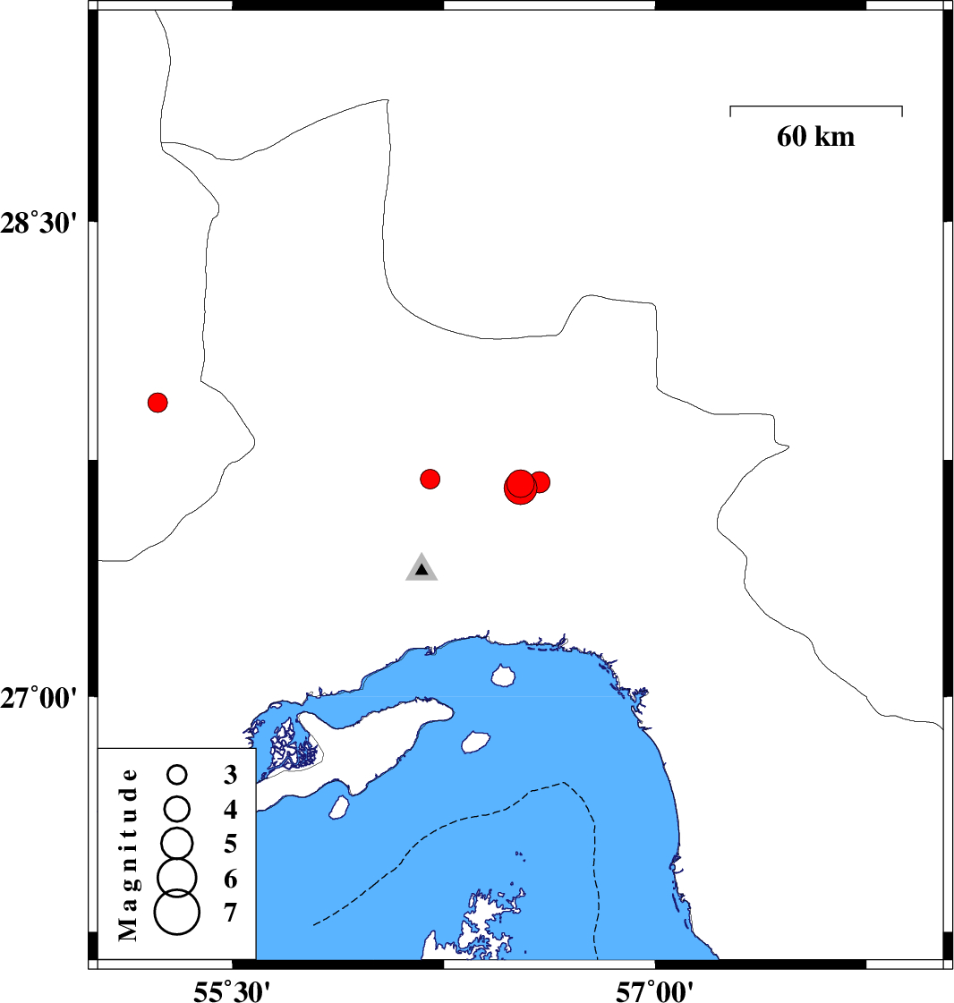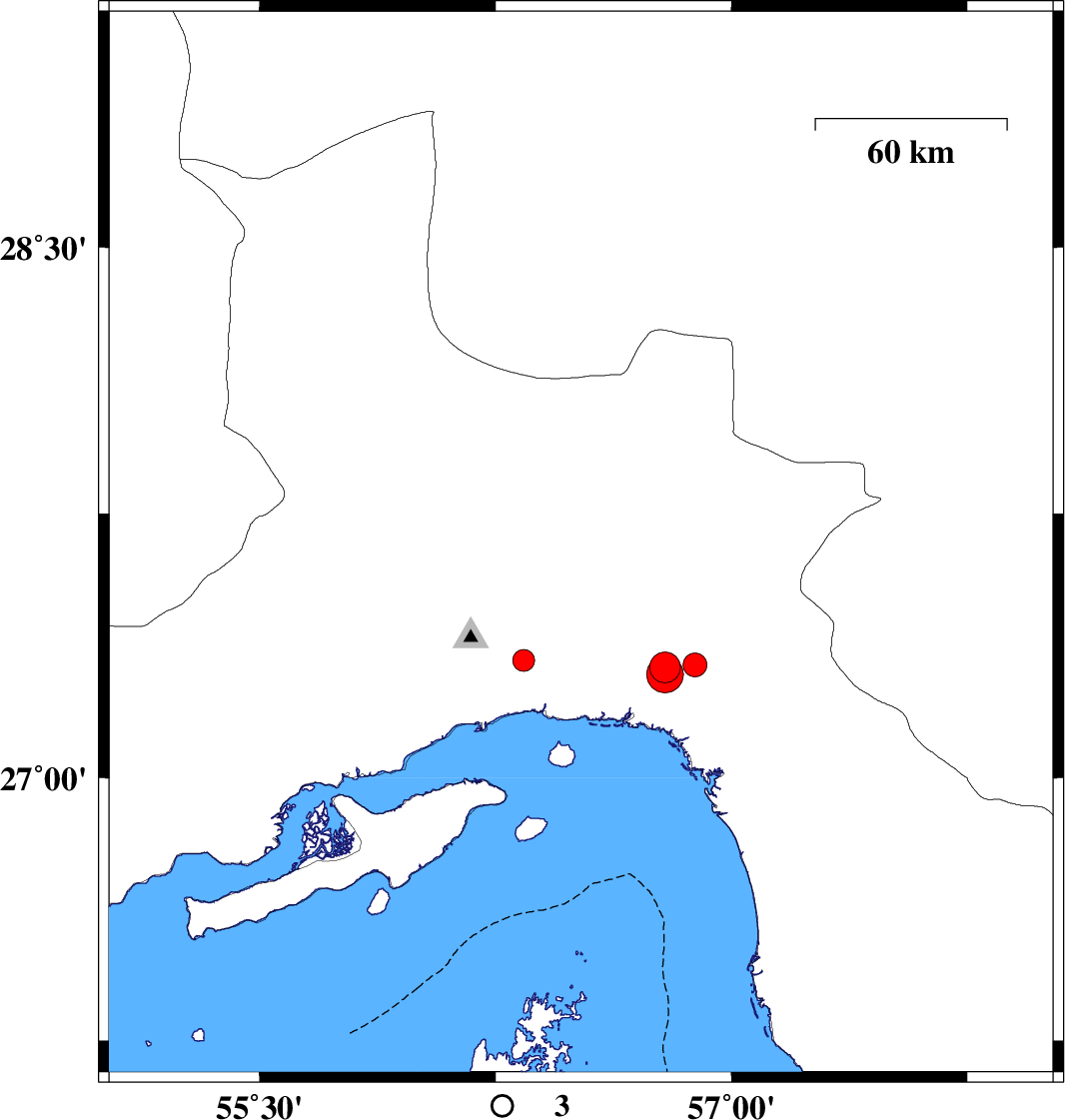 | 2022/09/19 | 21:20:42.1 | 01:50:42.1 | 27.93 | 55.234 | 12 | ML:3.1 | Fars Province, 78 km South-West of Hajiabad | ||