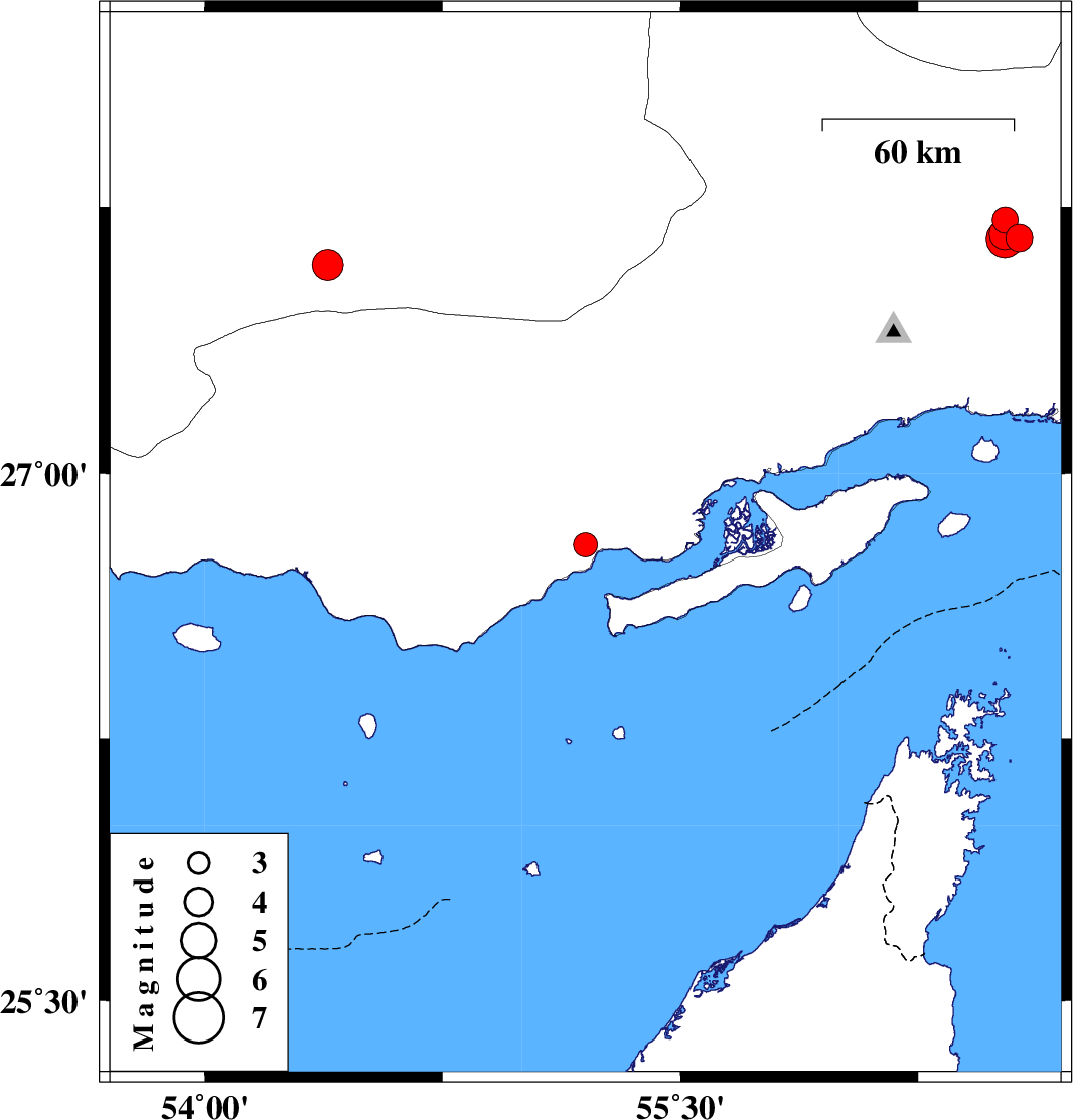| 2022/09/26 | 00:18:35.3 | 03:48:35.3 | 27.713 | 56.524 | 14 | ML:3.7 | Hormozgan Province, 63 km North-East of Bandar-e abbas | ||