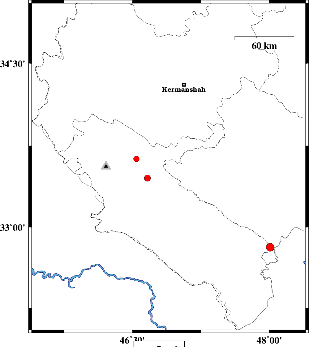 | 2022/09/28 | 16:18:03.8 | 19:48:03.8 | 33.546 | 46.896 | 10 | ML:3.9 | Lorestan Province, 45 km -East of Ilam | ||