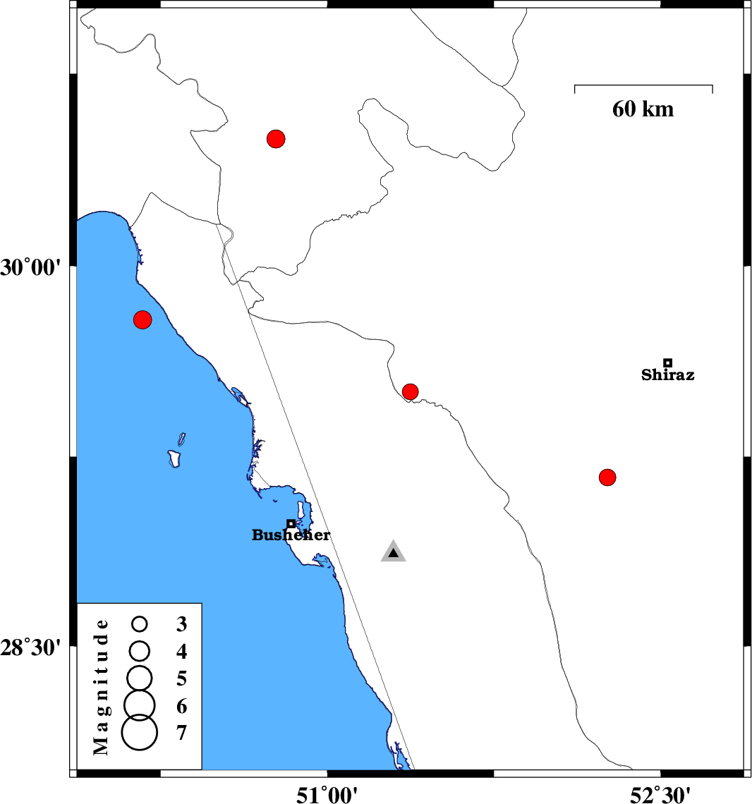 | 2022/10/02 | 05:15:10.5 | 08:45:10.5 | 29.506 | 51.373 | 12 | ML:3.3 | Fars Province, 30 km South-West of Kazerun | ||