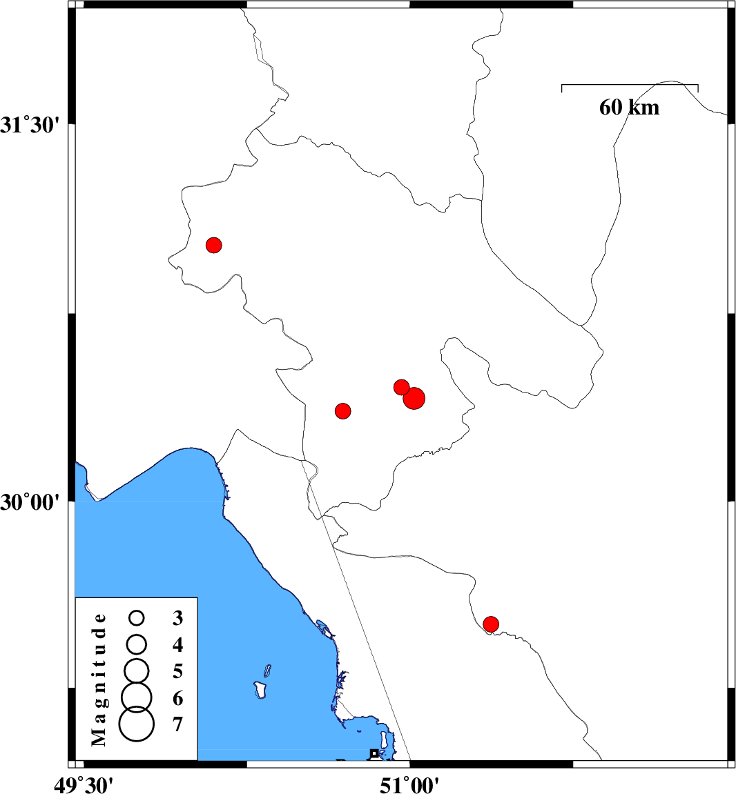 | 2022/10/02 | 05:15:10.5 | 08:45:10.5 | 29.506 | 51.373 | 12 | ML:3.3 | Fars Province, 30 km South-West of Kazerun | ||