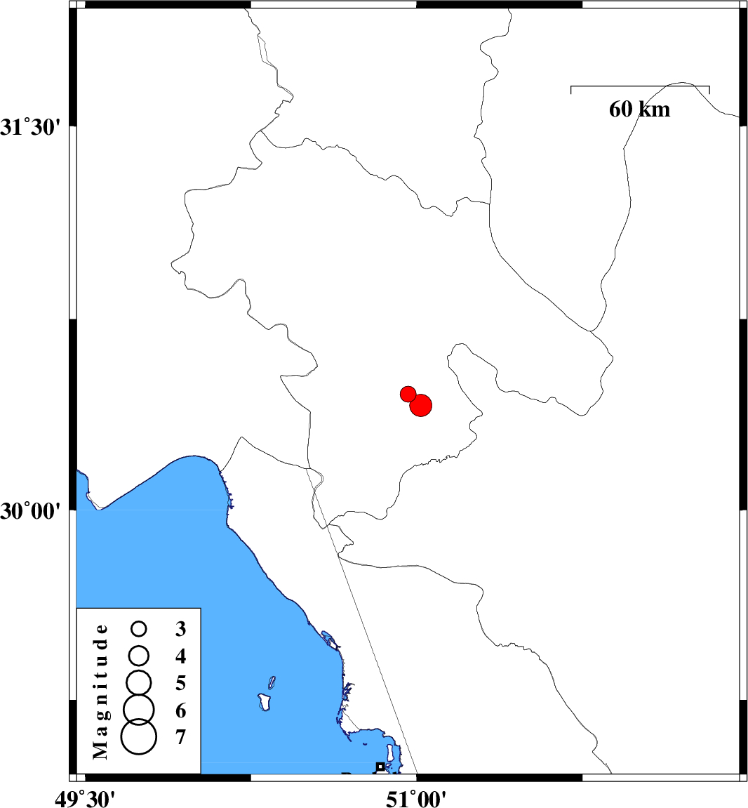 | 2022/10/23 | 01:55:26.5 | 05:25:26.5 | 30.411 | 51.018 | 15 | ML:4.5 | Kohkiluieh va boyerahmad Province, 23 km -East of Dogonbadan |