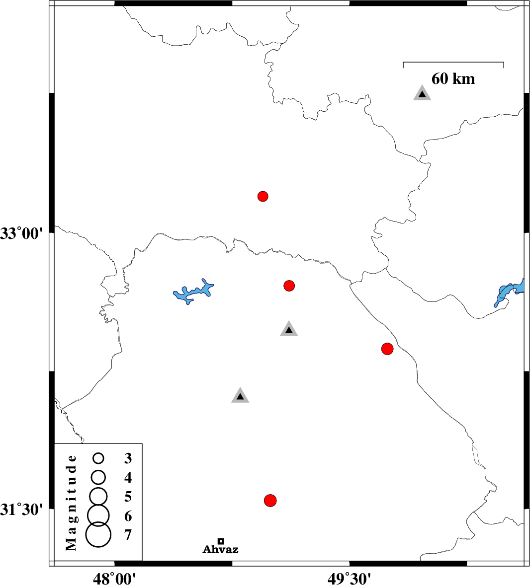 | 2022/10/01 | 21:19:57.7 | 00:49:57.7 | 31.545 | 48.994 | 13 | ML:3.5 | Khoozestan Province, 39 km North-East of Ahvaz | ||