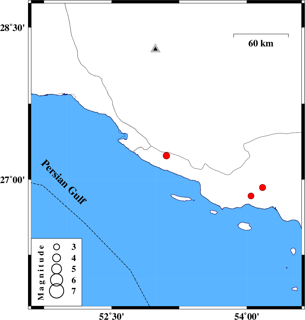 | 2022/10/26 | 14:22:56.7 | 17:52:56.7 | 26.92 | 54.175 | 12 | ML:3.2 | Hormozgan Province, 36 km South-West of Bastak | ||