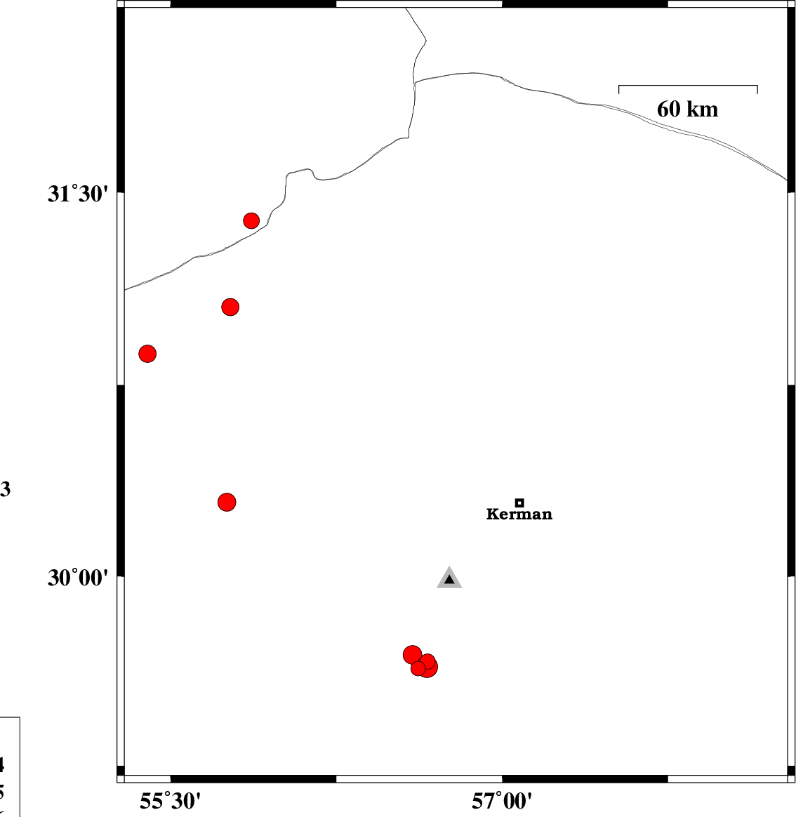 | 2022/07/17 | 11:13:39.6 | 15:43:39.6 | 30.061 | 57.655 | 12 | ML:3 | Kerman Province, 61 km South-East of Kerman | ||