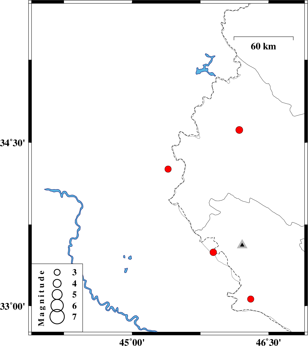 | 2022/11/21 | 01:14:52.5 | 04:44:52.5 | 34.258 | 45.395 | 7 | ML:3.2 | Iraq, 33 km South-West of Qasr-E-Shirin | ||