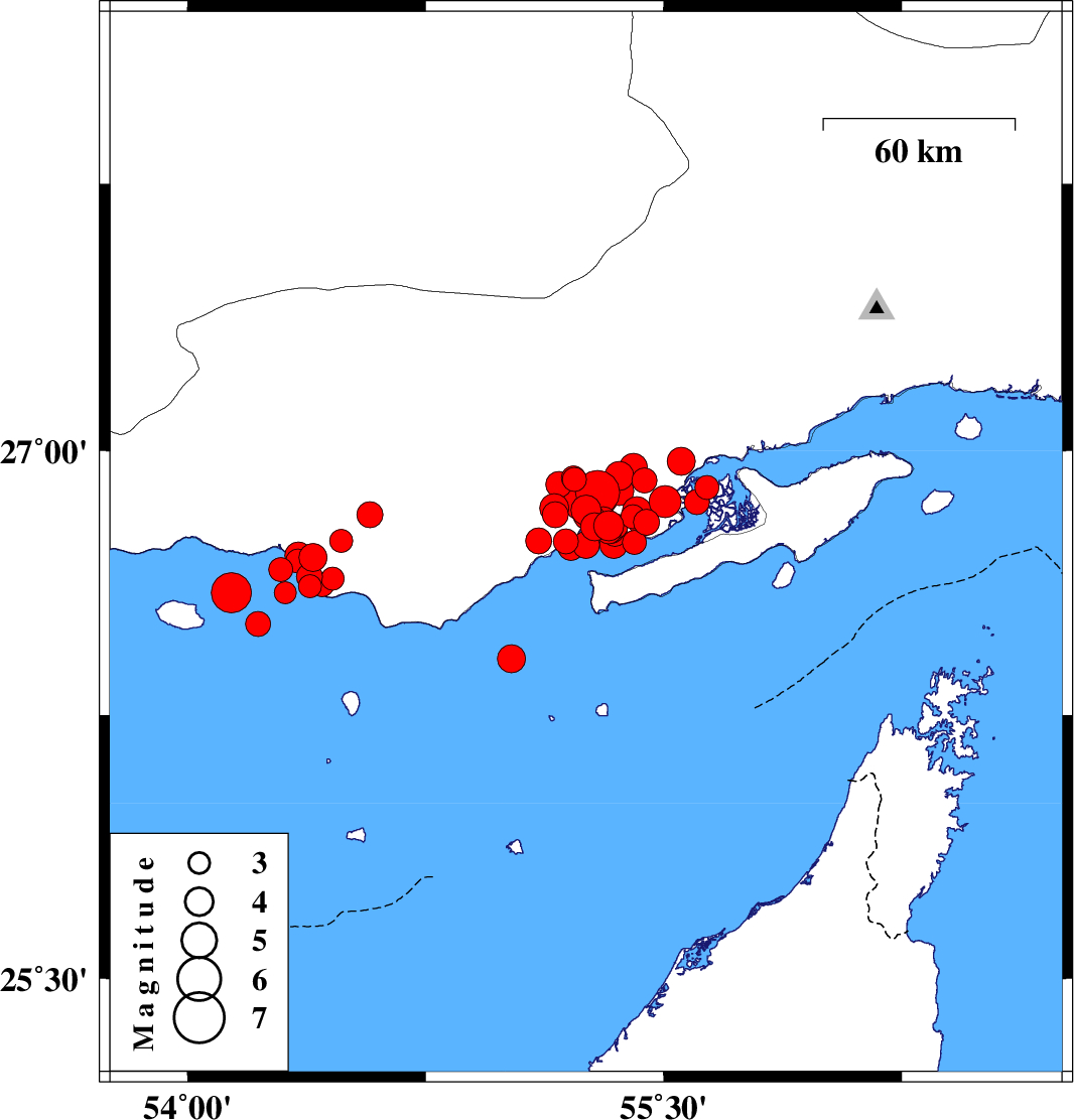 2022/07/02 04:44:40.5 09:14:40.5 26.73455.25512 ML:3.8 Persian Gulf, 47 km North-East of Bandar-e lengeh