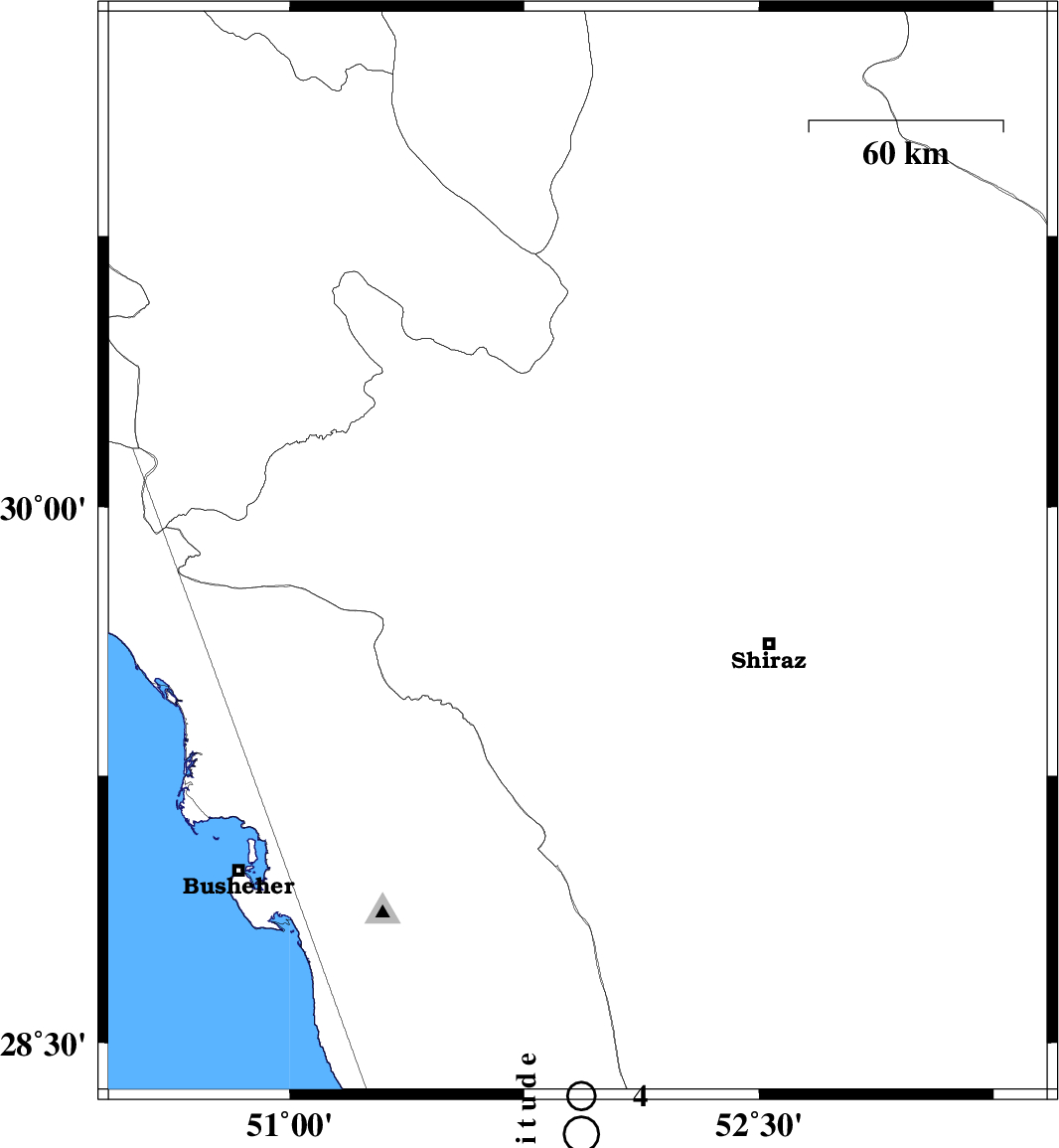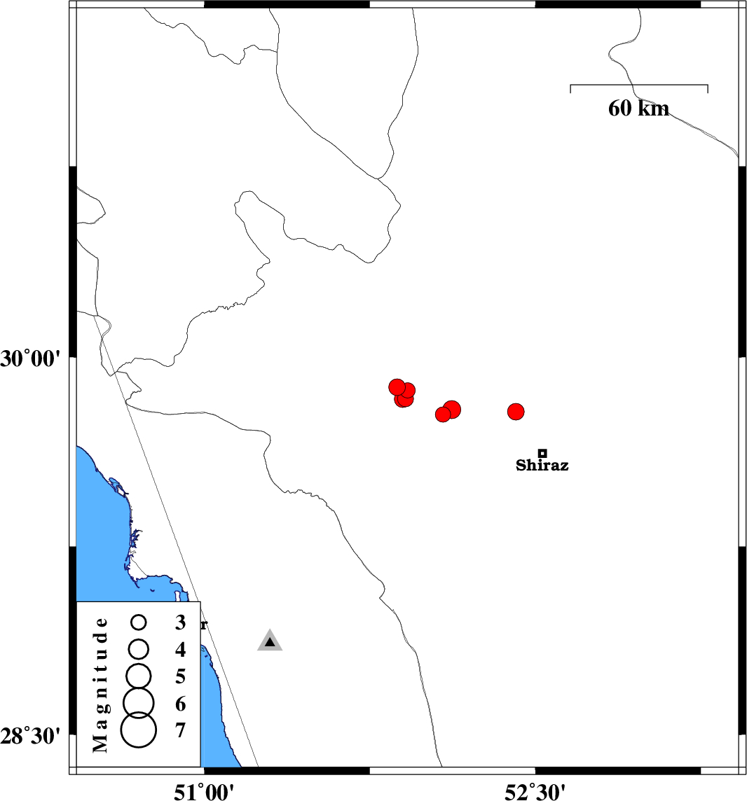 | 2022/10/31 | 01:12:28.6 | 04:42:28.6 | 29.784 | 52.412 | 16 | ML:3.4 | Fars Province, 22 km North-West of Shiraz | ||