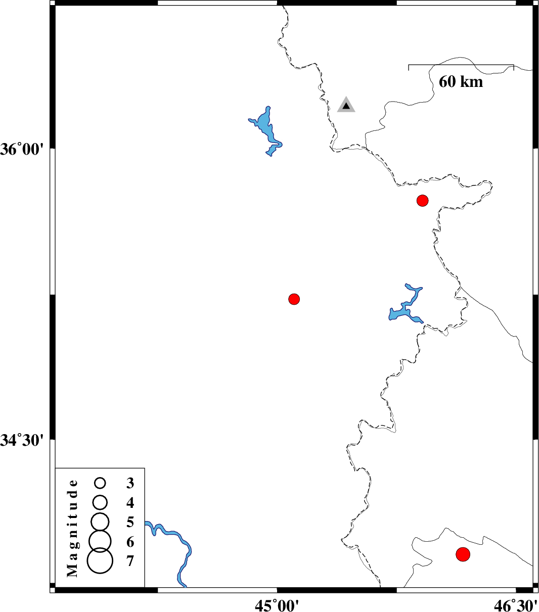 | 2022/06/03 | 11:39:53.1 | 16:09:53.1 | 35.732 | 45.913 | 1 | ML:3.2 | Iraq, 29 km South of Baneh |