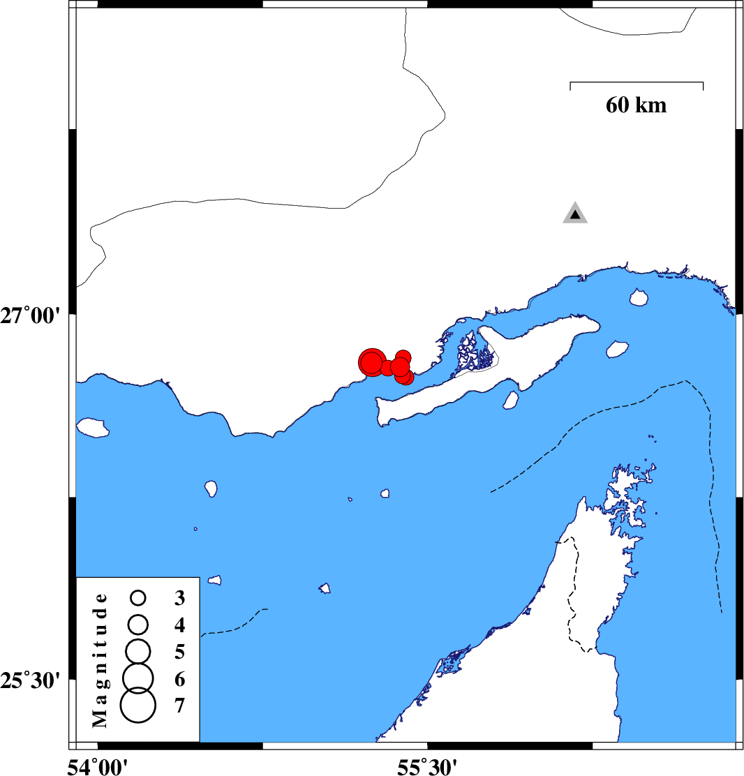 2022/11/30 19:51:26.1 23:21:26.1 26.74755.38516 ML:3.3 Persian Gulf, 59 km North-East of Bandar-e lengeh