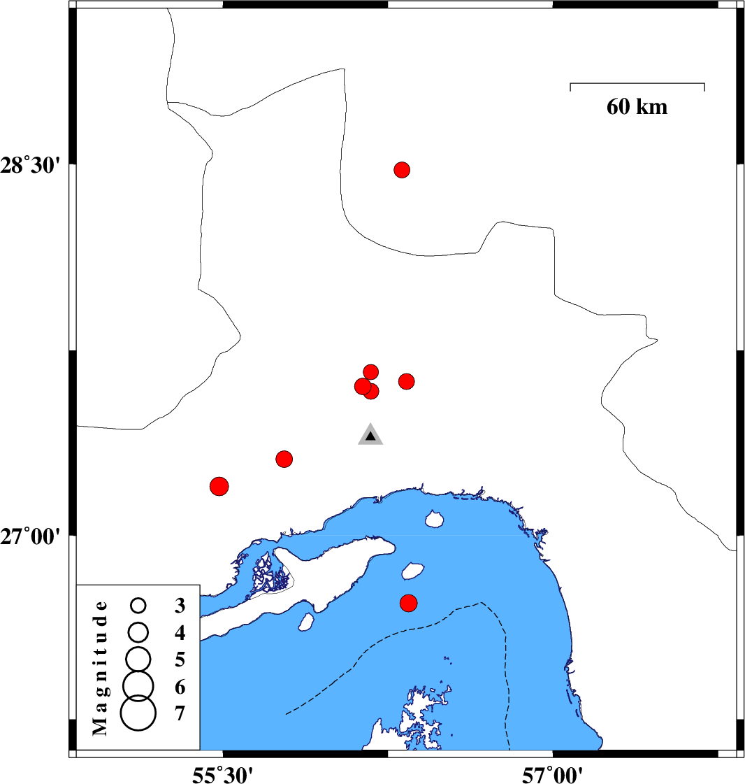 | 2022/05/25 | 05:41:16.6 | 10:11:16.6 | 27.585 | 56.173 | 6 | ML:3.3 | Hormozgan Province, 46 km North-West of Bandar-e abbas |