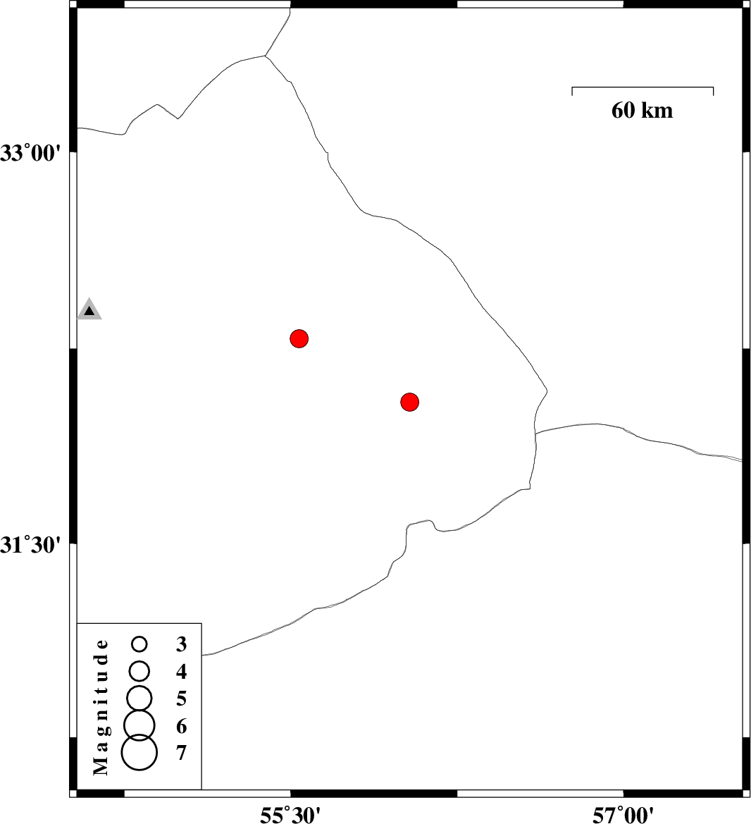 | 2022/12/08 | 23:34:30.0 | 03:04:30.0 | 32.045 | 56.036 | 4 | ML:3.6 | Yazd Province, 78 km North-East of Bafq | ||