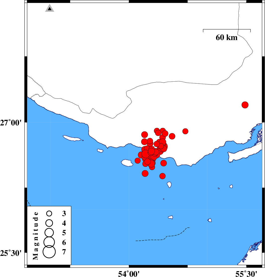 2022/06/16 11:18:16.2 15:48:16.2 26.65354.27912 ML:3.5 Persian Gulf, 61 km South of Bastak