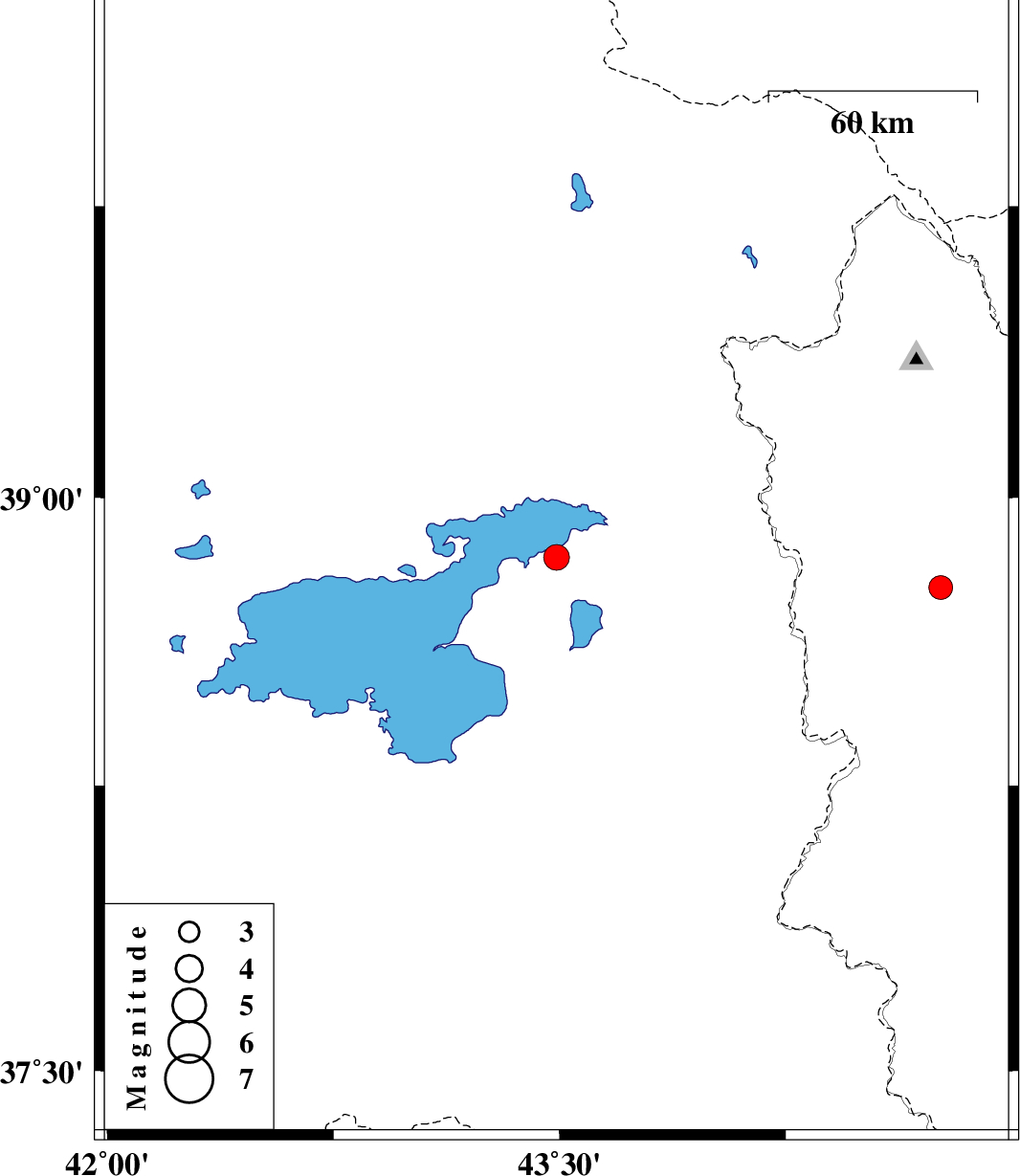 | 2022/12/20 | 16:44:01.3 | 20:14:01.3 | 38.844 | 43.49 | 8 | ML:3.8 | Turkey, 83 km South-West of Seyah Cheshmah | ||