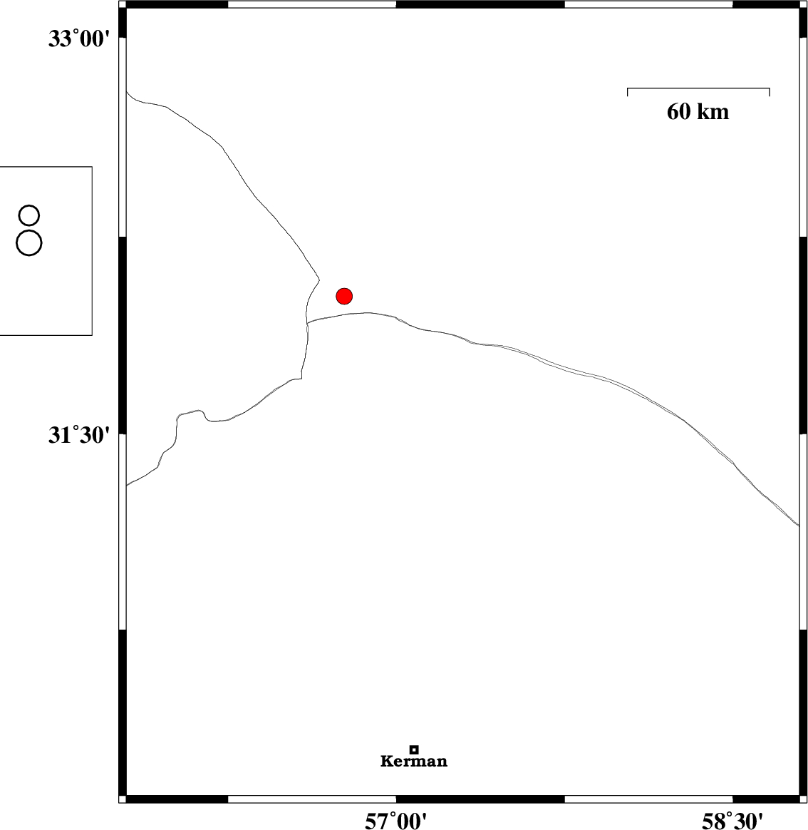 | 2022/11/25 | 09:39:22.1 | 13:09:22.1 | 31.604 | 57.252 | 12 | ML:3 | Kerman Province, 56 km North-East of Ravar | ||
