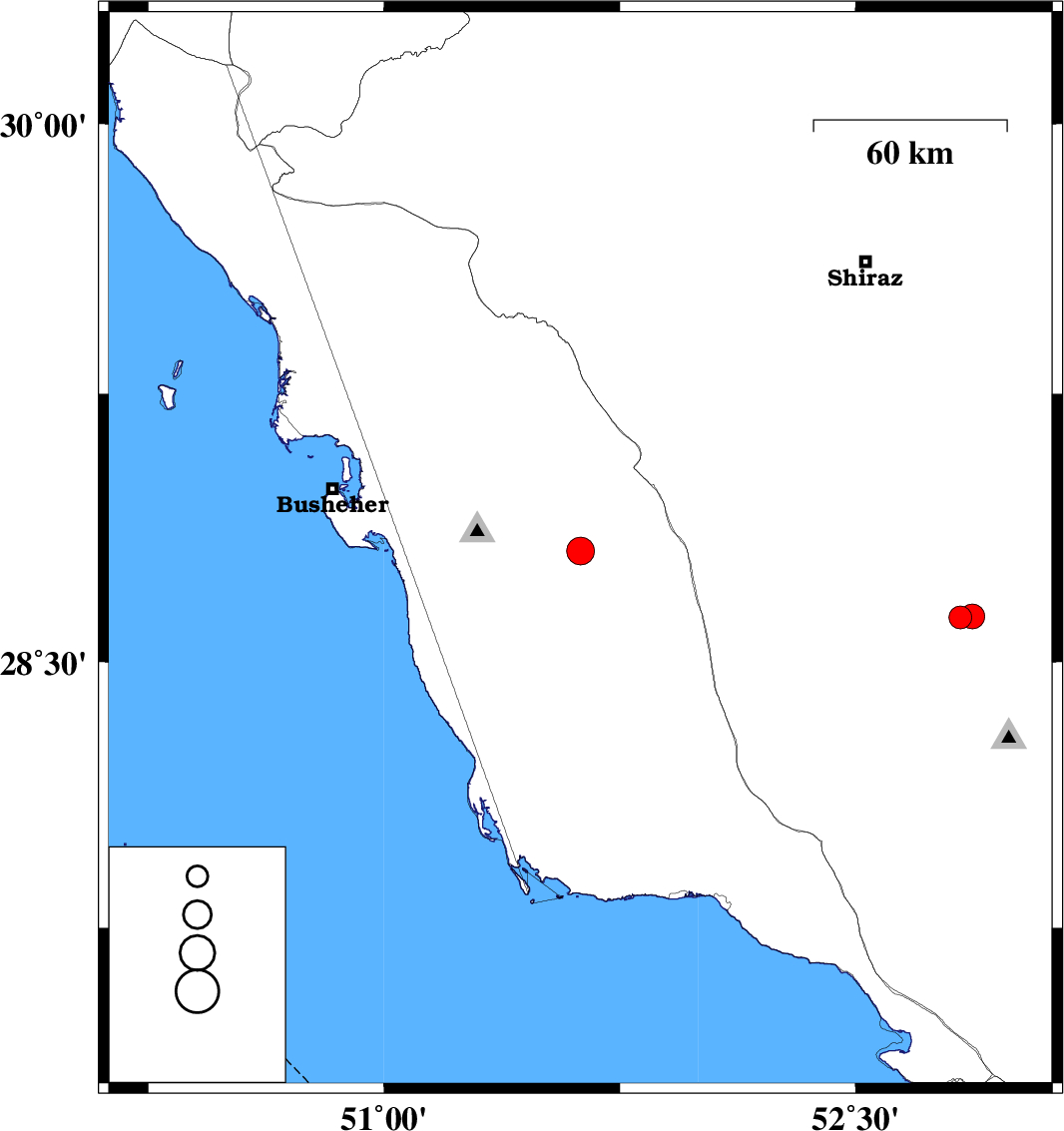 2022/12/25 16:48:45.7 20:18:45.7 28.81151.62510 ML:4 Bushehr Province, 30 km North-East of Khormog