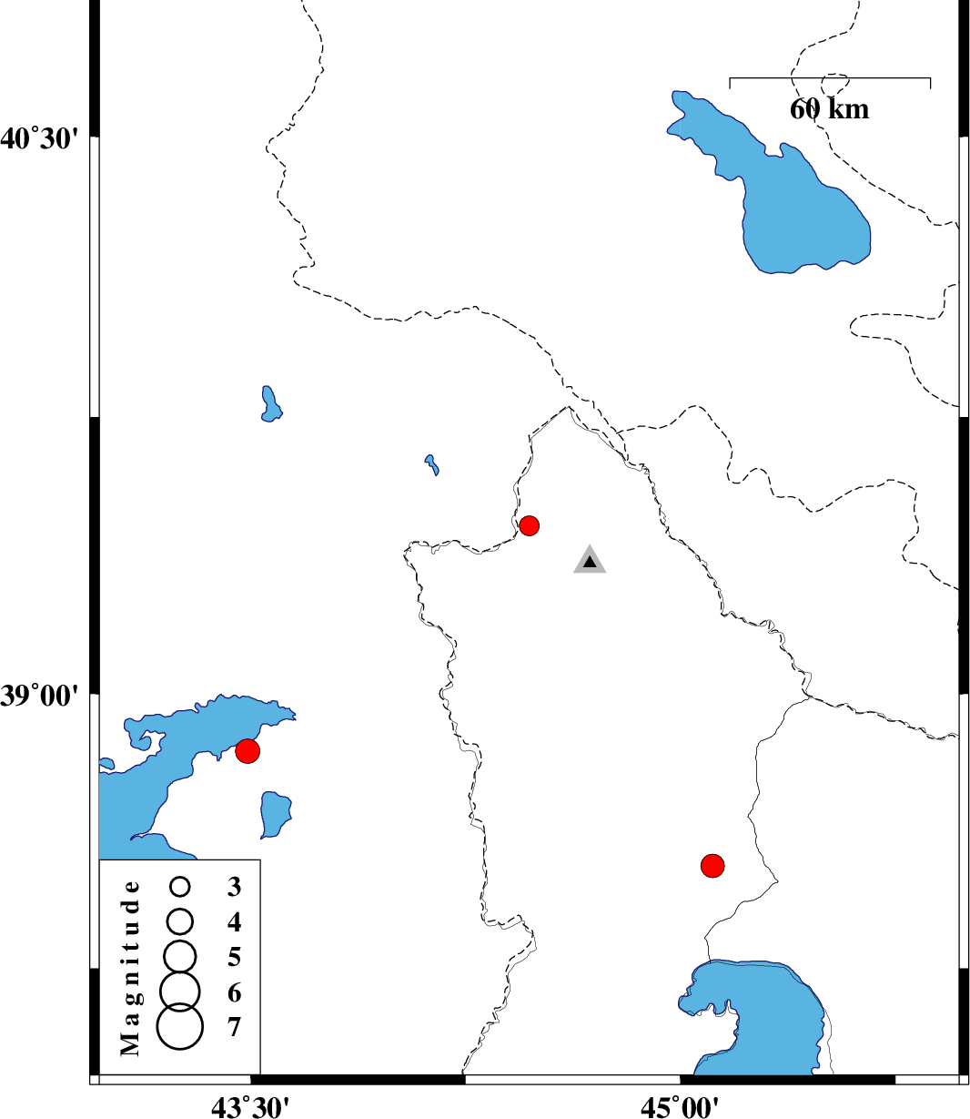 | 2022/12/20 | 16:44:01.3 | 20:14:01.3 | 38.844 | 43.49 | 8 | ML:3.8 | Turkey, 83 km South-West of Seyah Cheshmah |